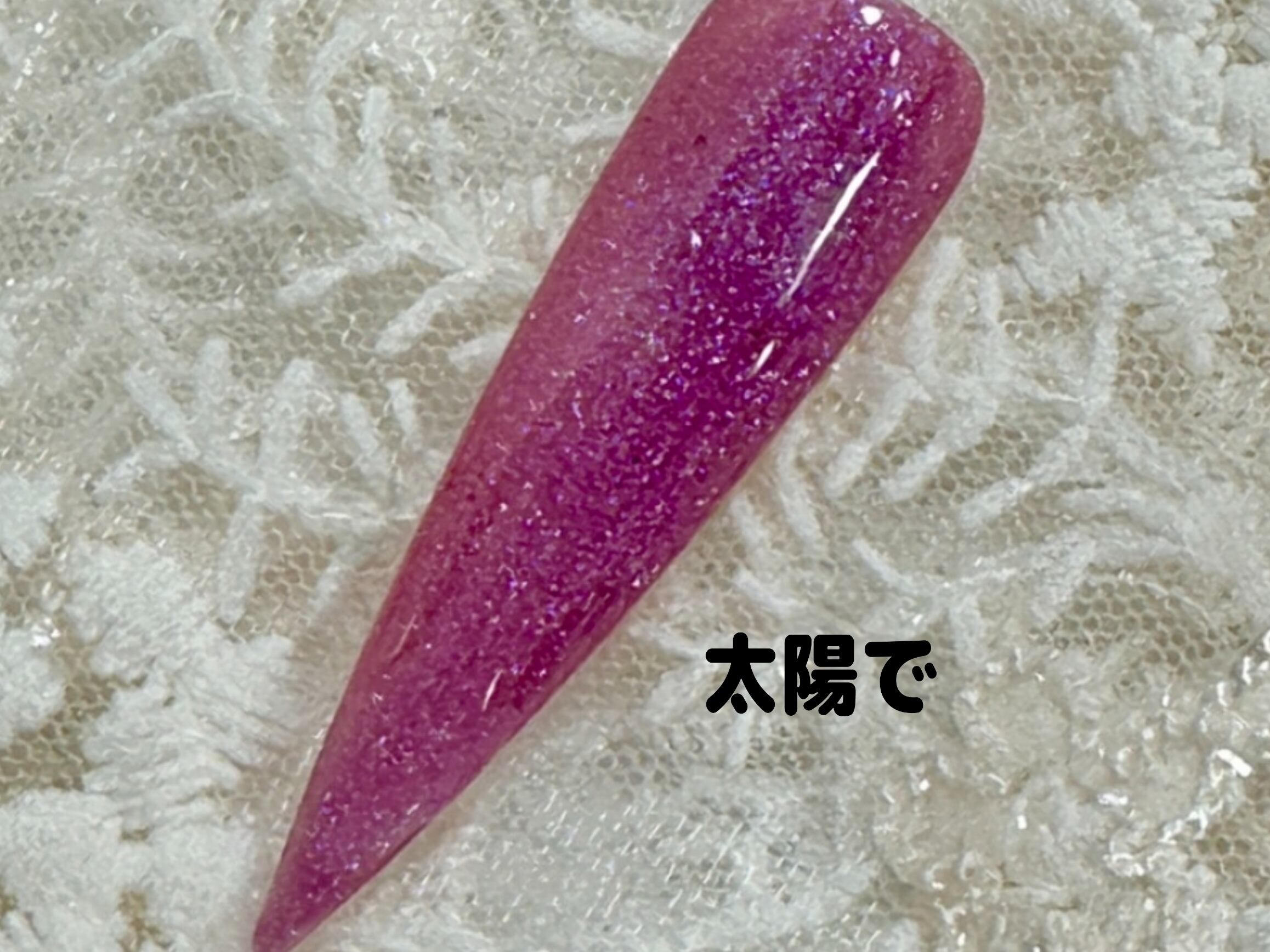温度によって自然できれいなグラデーション、暗いところで発光する、太陽で色変化、このグリッターひとつでどちらも体験出来ます!